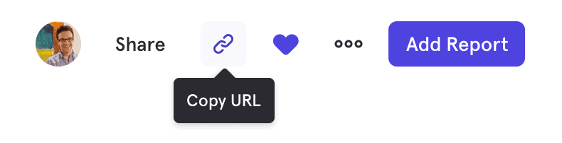 Both reports and boards can also be shared via the “Copy URL” button at the top right. Clicking this button will immediately copy the short link to the report or board, so you can quickly paste it into your application of choice.