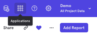 Note: This only applies to the Mixpanel’s core reports (Insights, Flows, Funnels, and Retention). Advanced reports like Signal, Experiments, and Impact lives in the Applications folder at the top right of the page.