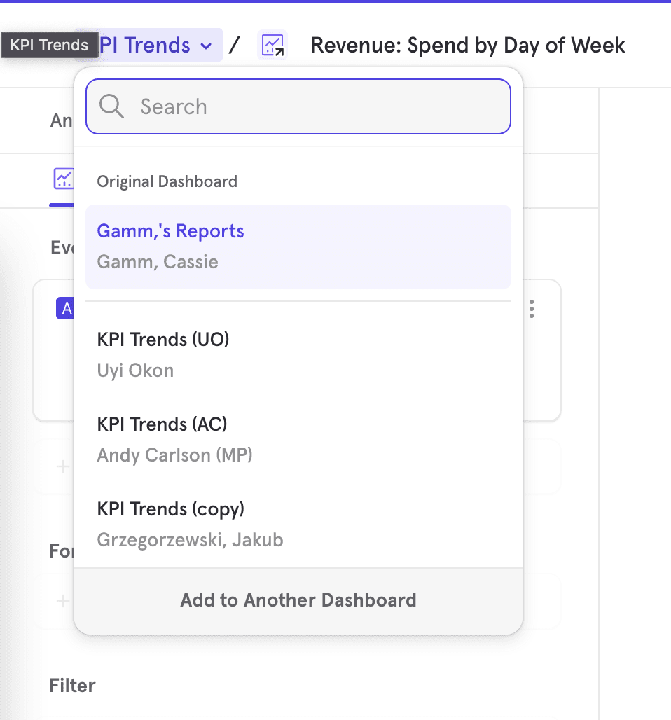 Reports are always saved to boards. When you save a report, you’ll be prompted to save it to a specific board. In essence, the board now acts as a folder, with many potential purposes, including: